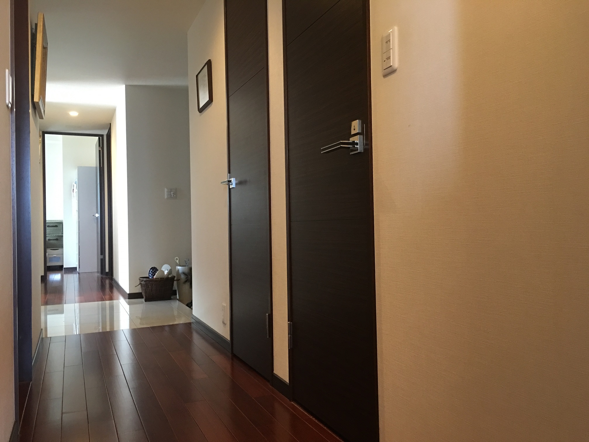 この邸宅では玄関に入り右に行くとそれぞれに収納スペース付きの洋室が3部屋あります。