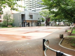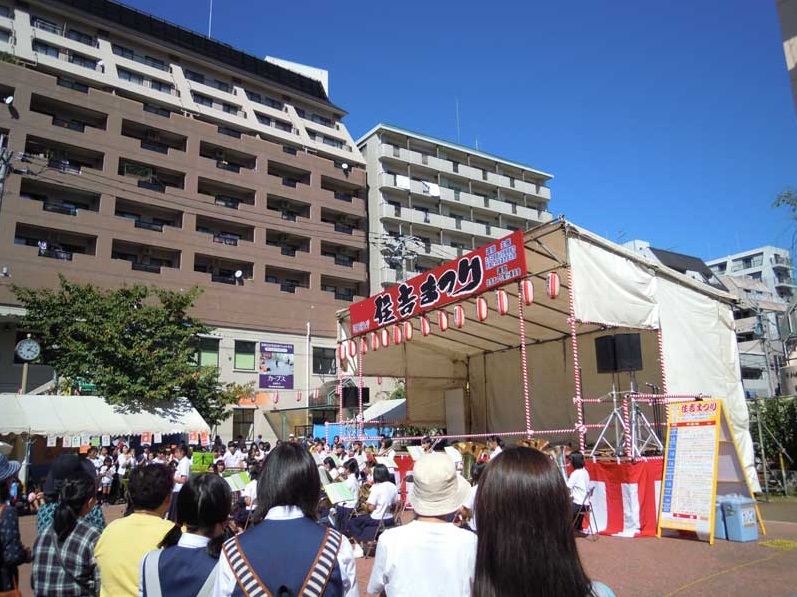 目の前は住吉公園で夏祭りやちょっとしたイベントなども行われている立地。