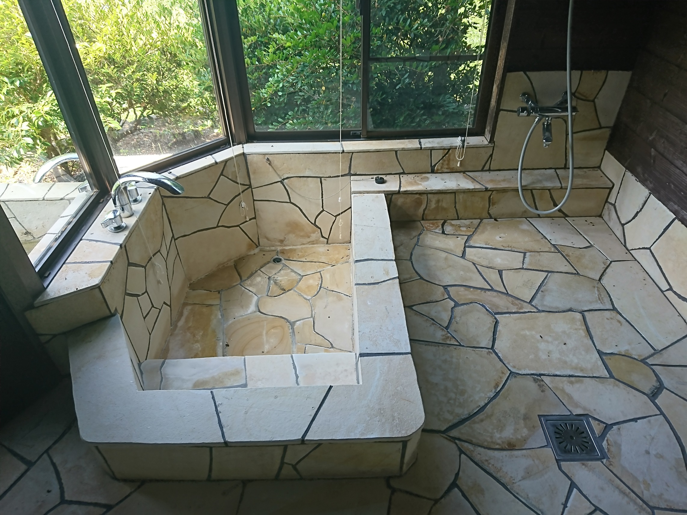 お風呂は渡り廊下の奥にあり、ちょっとした旅館の離れ風呂といった感じ。