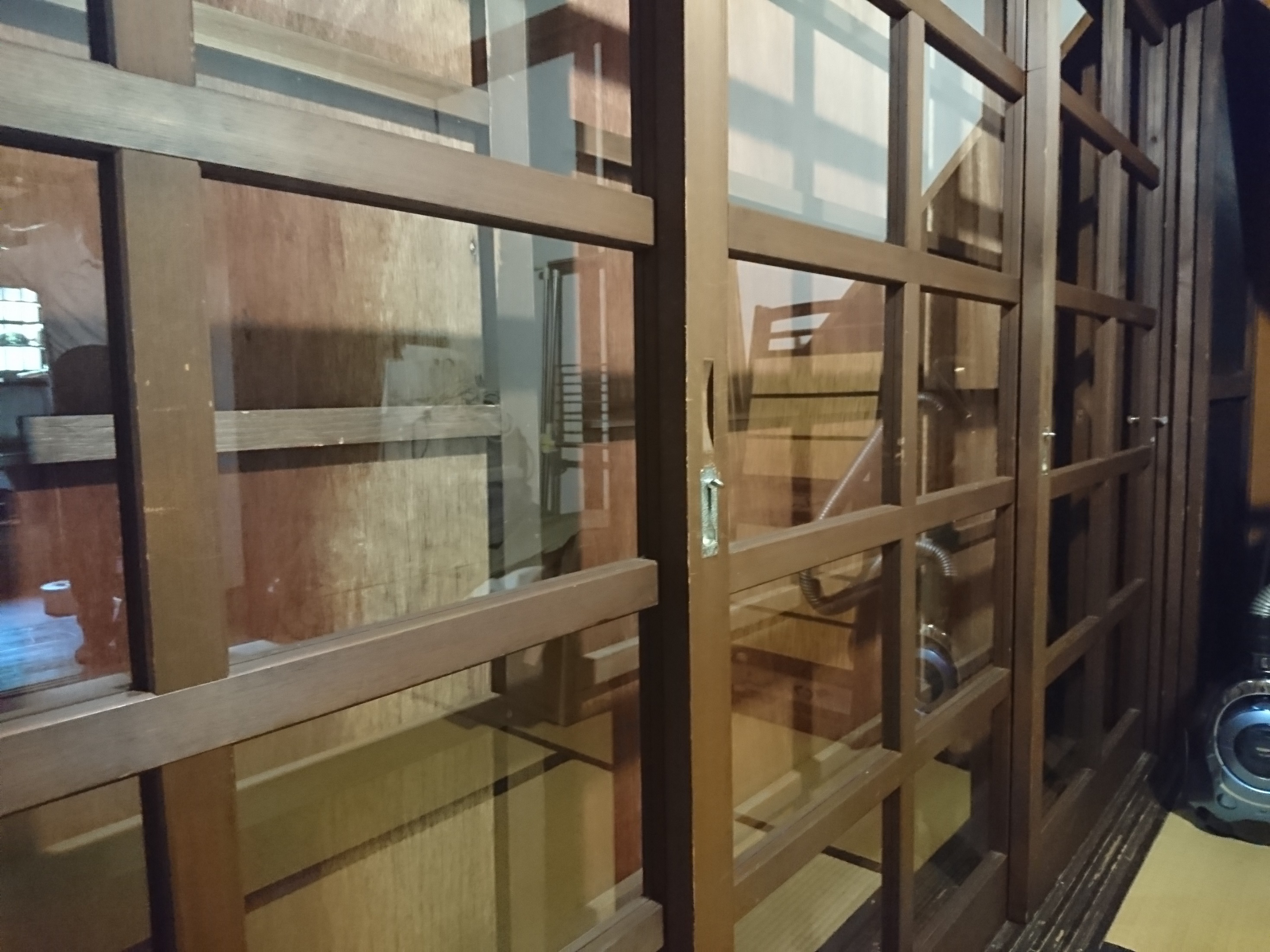 しかも、あえて昔の農機具もオブジェとして展示し、建具は木製、雨戸も木製、そして木材サッシを閉める金具までもねじ式金具と細部までこだわっています。